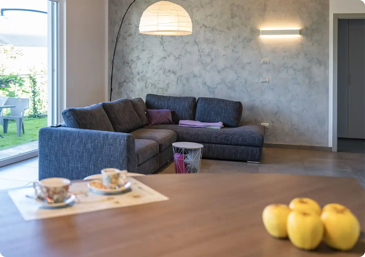 In Agritur Gioia, il tuo appartamento è pensato per farti sentire subito a casa, circondato dal silenzio della natura e dalla bellezza della Val di Non. Situato a Sanzeno, in una posizione tranquilla ma strategica per esplorare il territorio, l'appartamento offre ambienti luminosi e moderni, accoglienti e arredati con semplicità e calore, nei quali il legno è assoluto protagonista.
